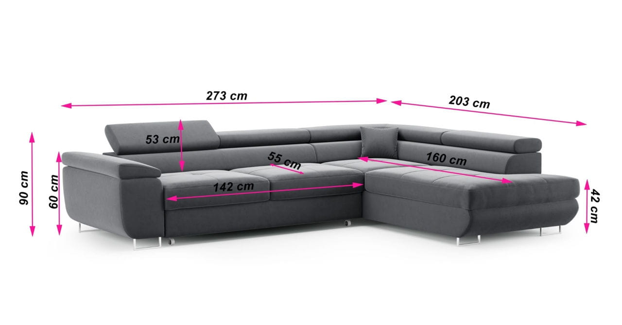 Narożnik idealnie sprawdzi się zarówno w przestronnych, jak i mniejszych wnętrzach, stając się stylowym i funkcjonalnym centrum każdego salonu.