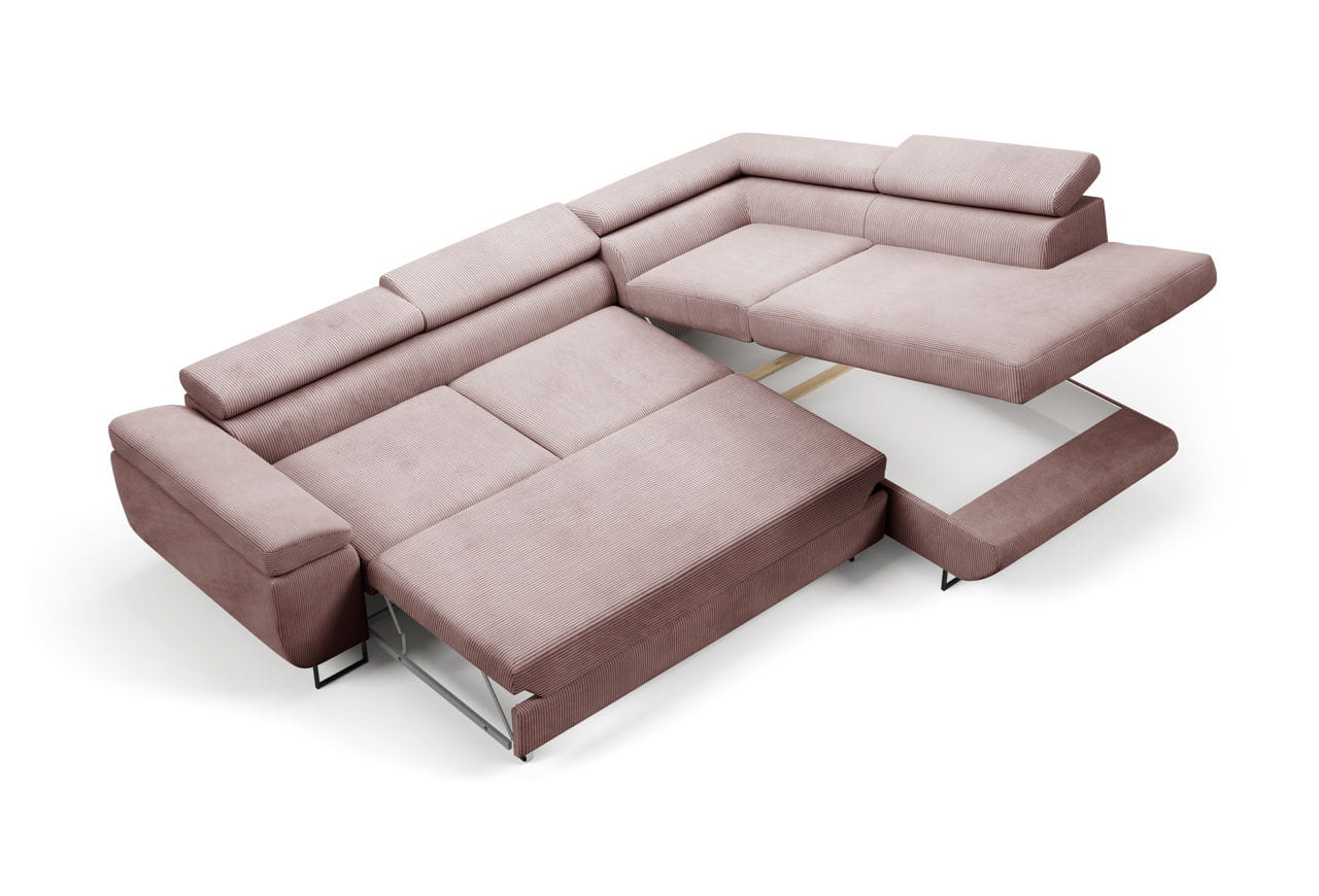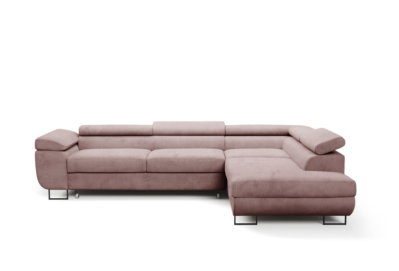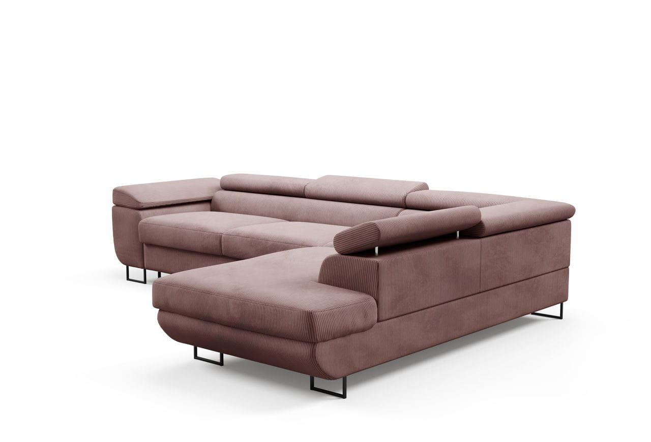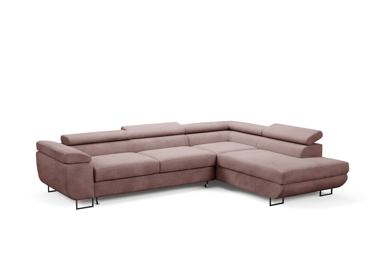Narożnik z regulowanymi zagłówkami Ontario sztruks róż - tkanina Poso 27