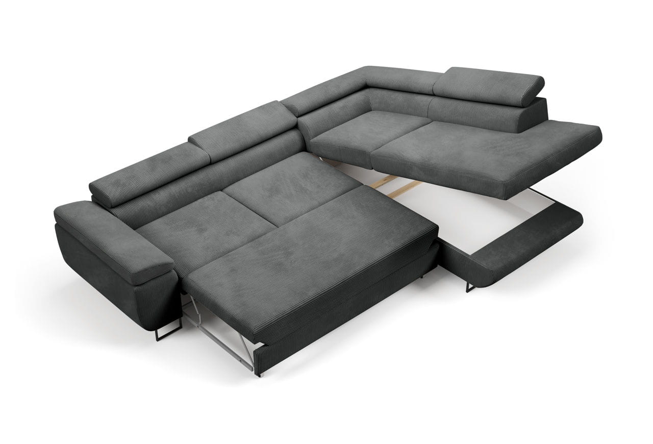 Narożnik z regulowanymi zagłówkami Ontario sztruks szary - tkanina Poso 115