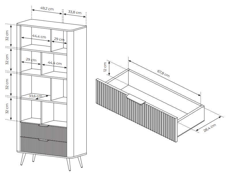Charakterystycznym elementem kolekcji są wysokie, metalowe nóżki, które nadają bryłom lekkości oraz ułatwiają utrzymanie czystości w pomieszczeniu. Do wyboru są dwie wersje wykończenia detali – elegancka czerń lub szlachetne złoto – w postaci nóg i uchwytów, które stanowią wyrafinowane dopełnienie całości.