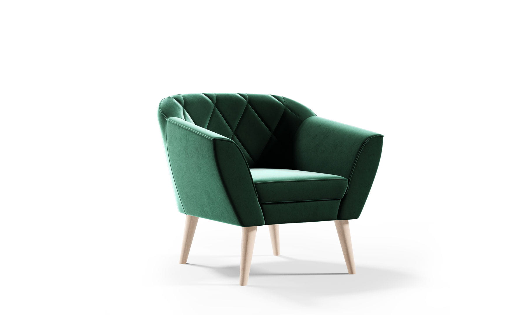 Skandynawski fotel Victoria butelkowa zieleń - tkanina Riviera 38