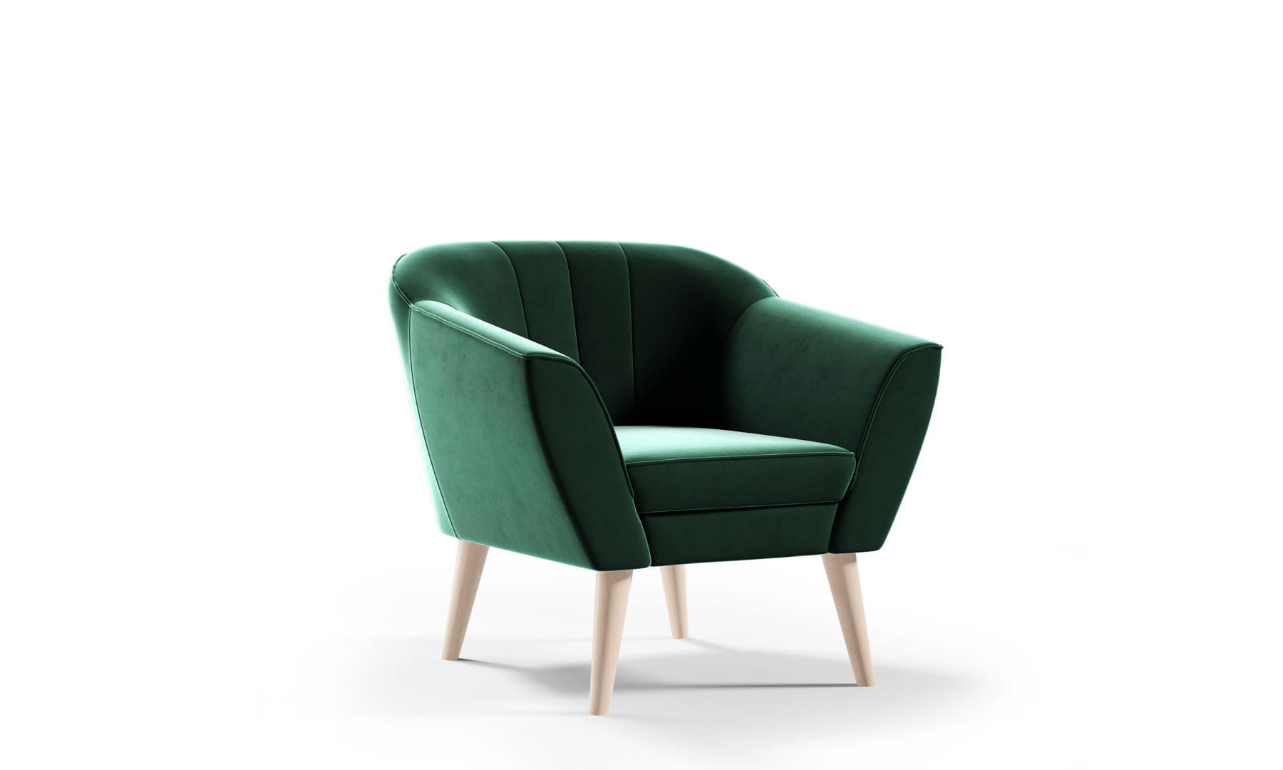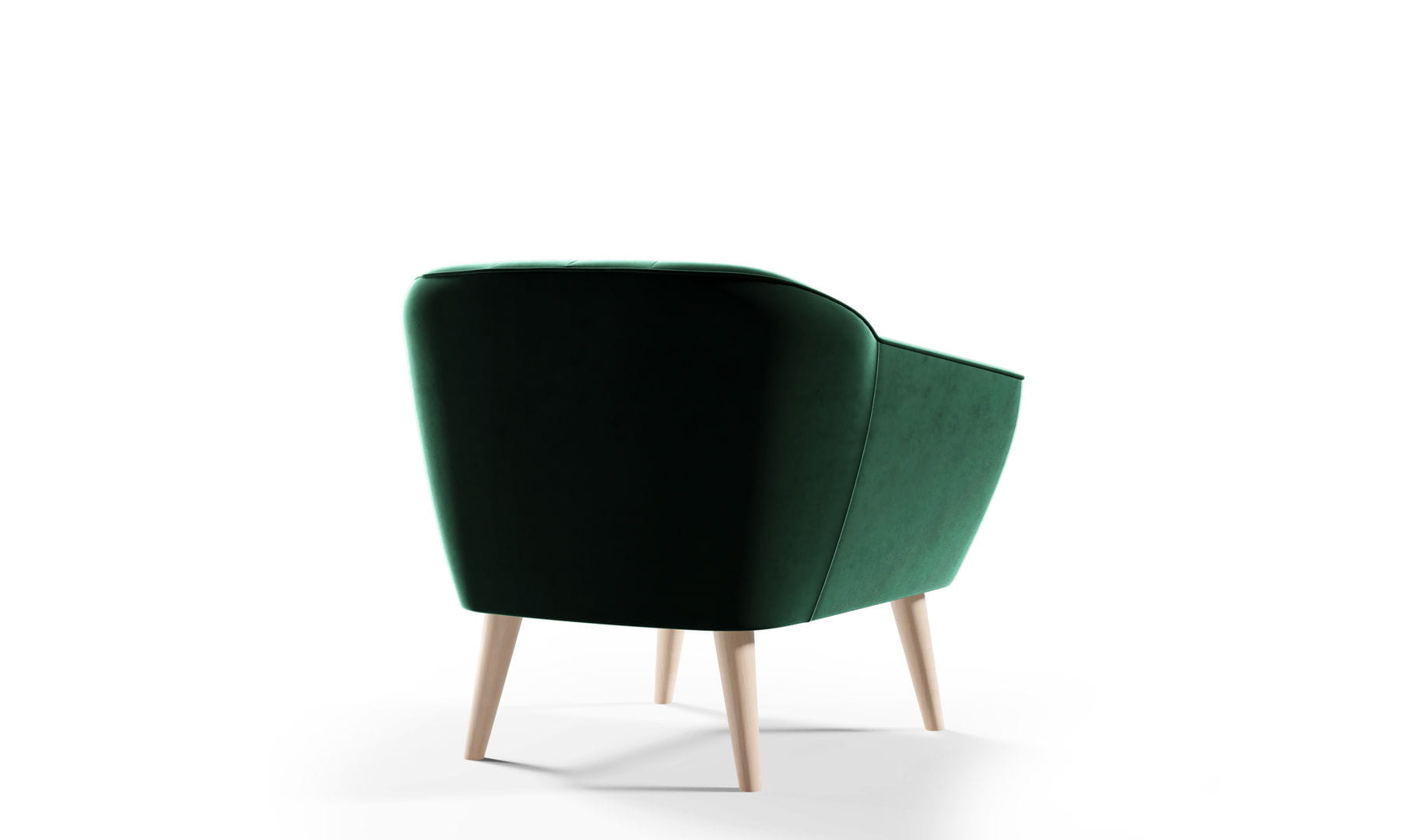 Skandynawski fotel Zaya butelkowa zieleń - tkanina Riviera 38