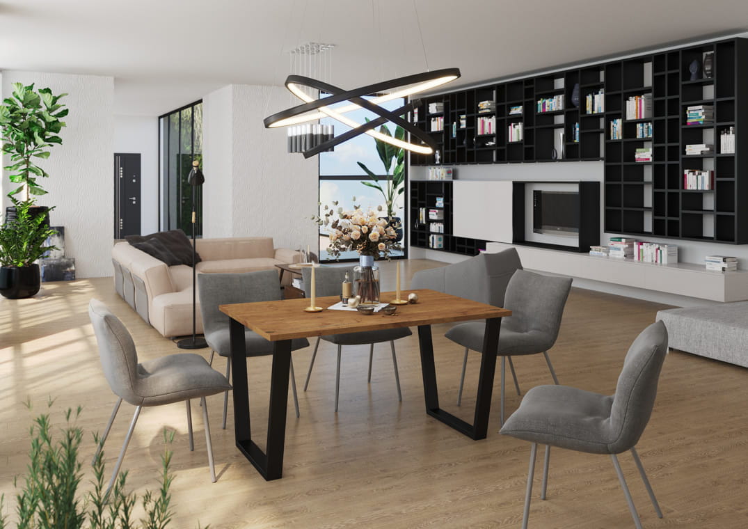 Stół industrialny Cezar to propozycja dla przestrzeni o charakterze loftowym. Nogi stołu wykonane zostały z profilu, malowane proszkowo na kolor czarny mat. Blat stołu to płyta laminowana o grubości 28mm.