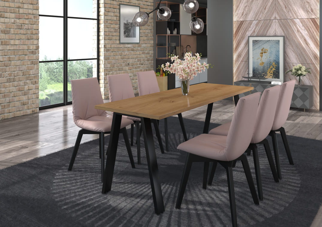 Stół industrialny Kleo to propozycja dla przestrzeni o charakterze loftowym. Nogi stołu wykonane zostały z profilu, malowane proszkowo na kolor czarny mat. Blat stołu to płyta laminowana o grubości 28mm.