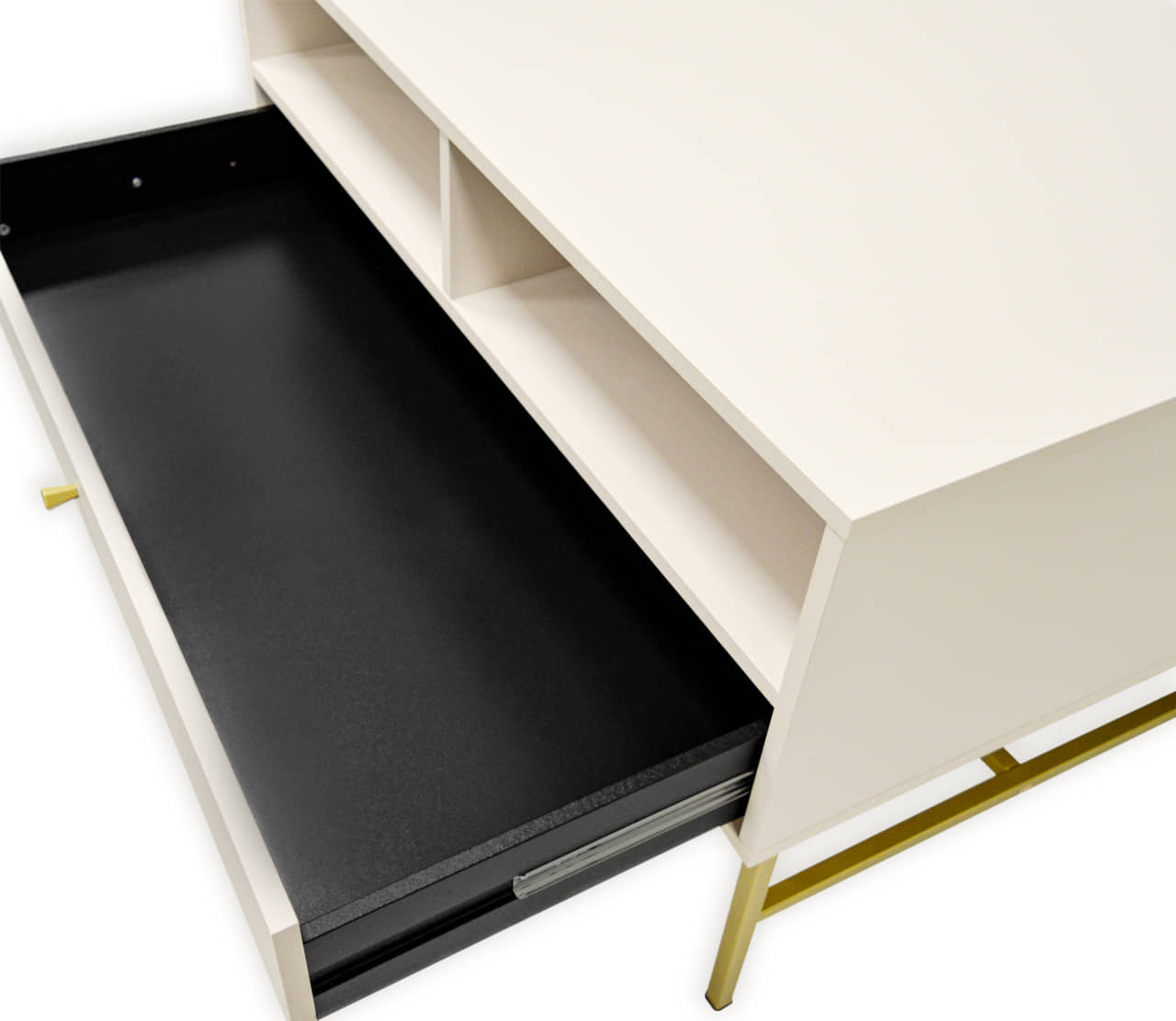Stolik kawowy został wyposażony w jedną wysuwaną szufladę.