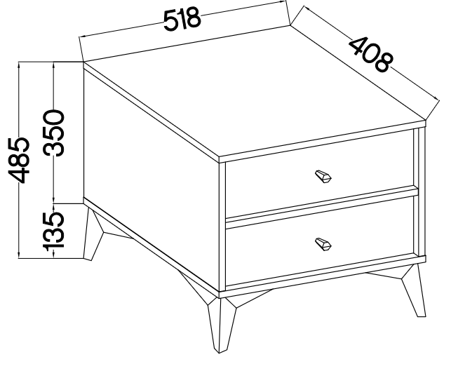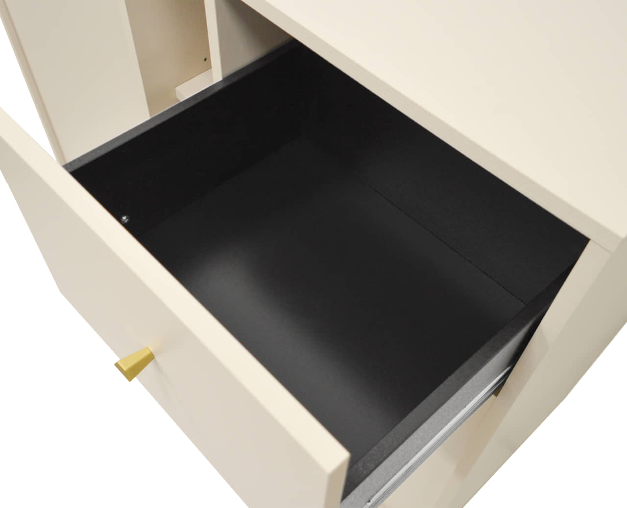 Stolik nocny został wyposażony w dwie szuflady wysuwane.