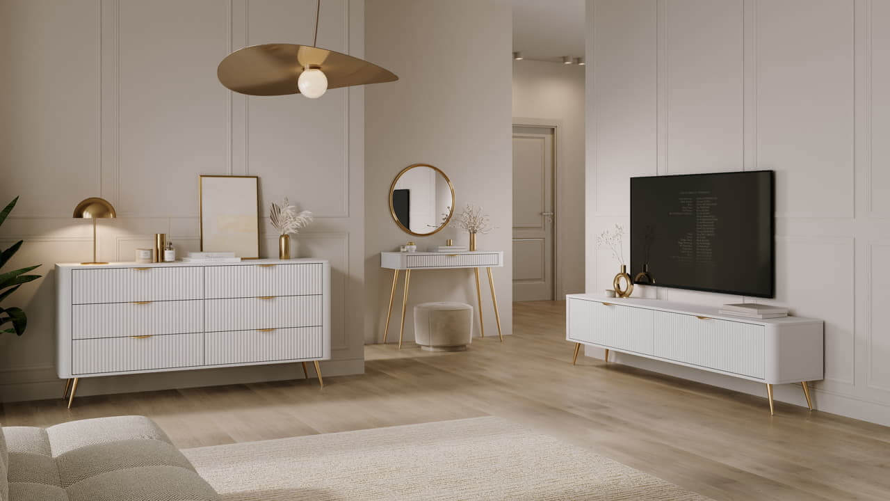 Kolekcja Lante to połączenie elegancji i nowoczesnego designu w ponadczasowym wydaniu. Meble dostępne są w dwóch wersjach kolorystycznych – subtelnym beżu lub głębokiej czerni – dzięki czemu łatwo dopasujesz je zarówno do jasnych, minimalistycznych wnętrz, jak i tych urządzonych w bardziej wyrazistym stylu.