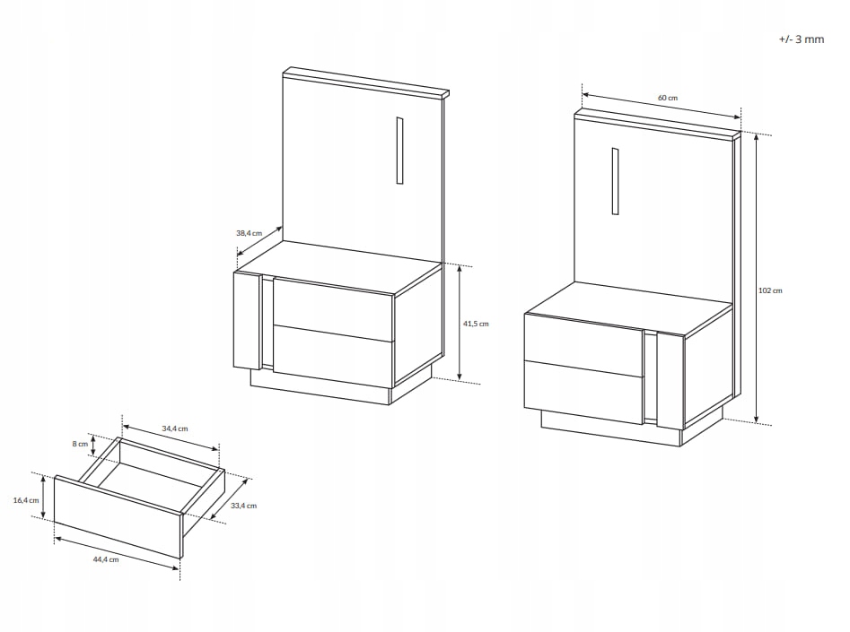 - 2x stolik nocny - 2x szer. 60 cm /wys. 102 cm /gł. 46 cm
