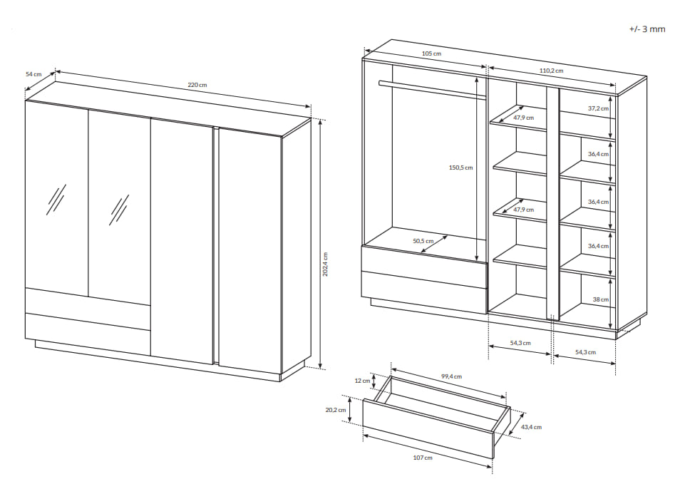 - szerokość: 220cm,