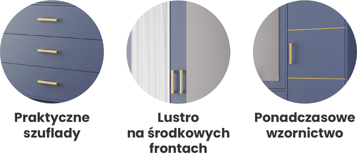 Nowoczesna czterodrzwiowa szafa Bali wykonana z ekologicznej płyty wiórowej wyłożonej wysokiej jakości melaminą. Zaprojektowana w przenikliwym błękitnym odcieniu, który rozświetli Twoją przestrzeń. Zewnętrzne skrzydła szafy skrywają 5 pakownych półek z każdej strony idealnych do przechowywania bielizny, spodni lub drobnych akcesoriów. Centralna przestrzeń zapewnia dodatkowe miejsce na wieszaki, a dzięki 3 dodatkowym szufladom z łatwością pomieścisz i uporządkujesz wszystkie ubrania. Szafa Bali gwarantuje odpowiednią ilość miejsca do przechowywania dla najbardziej wymagających.