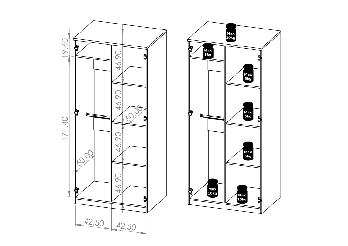 - 2x drążek ubraniowy