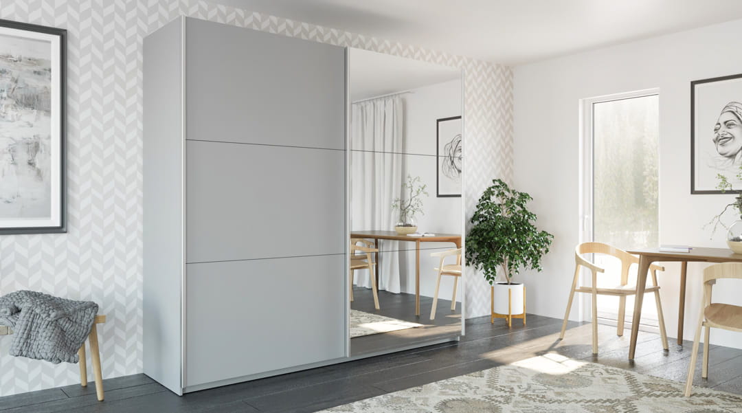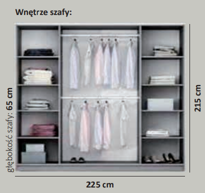 VIGO 225 to duża szafa z dwoma przesuwnymi skrzydłami. Jej środek charakteryzują dwa poziome drążki, co sprawia, że nawet kolekcjoner koszul pomieści je wszystkie bez konieczności ich składania.