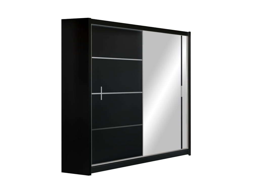 Vista to seria kilku modeli szaf, które przy tej samej wysokości i głębokości, mają różne szerokości. Charakterystyczny dla wzornictwa serii jest wygląd frontów – jeden to w całości lustrzana tafla, drugi – w kolorze korpusu pocięty poziomymi cienkimi liniami. Vista 203 zaspokoi potrzeby dwóch i więcej osób.