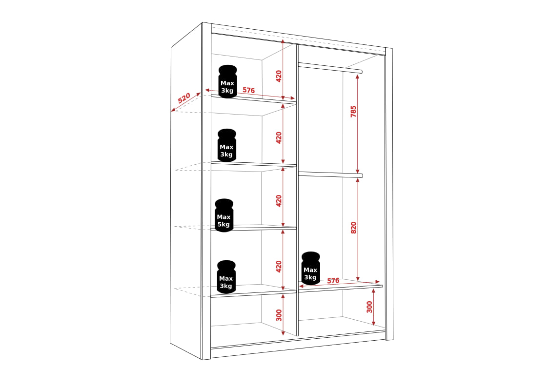 - 2x drążek ubraniowy,