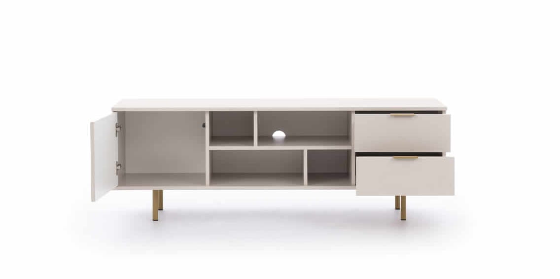 ✔ Subtelne detale – delikatnie wbudowane uchwyty i smukłe, metalowe nóżki nadają lekkości całej konstrukcji.