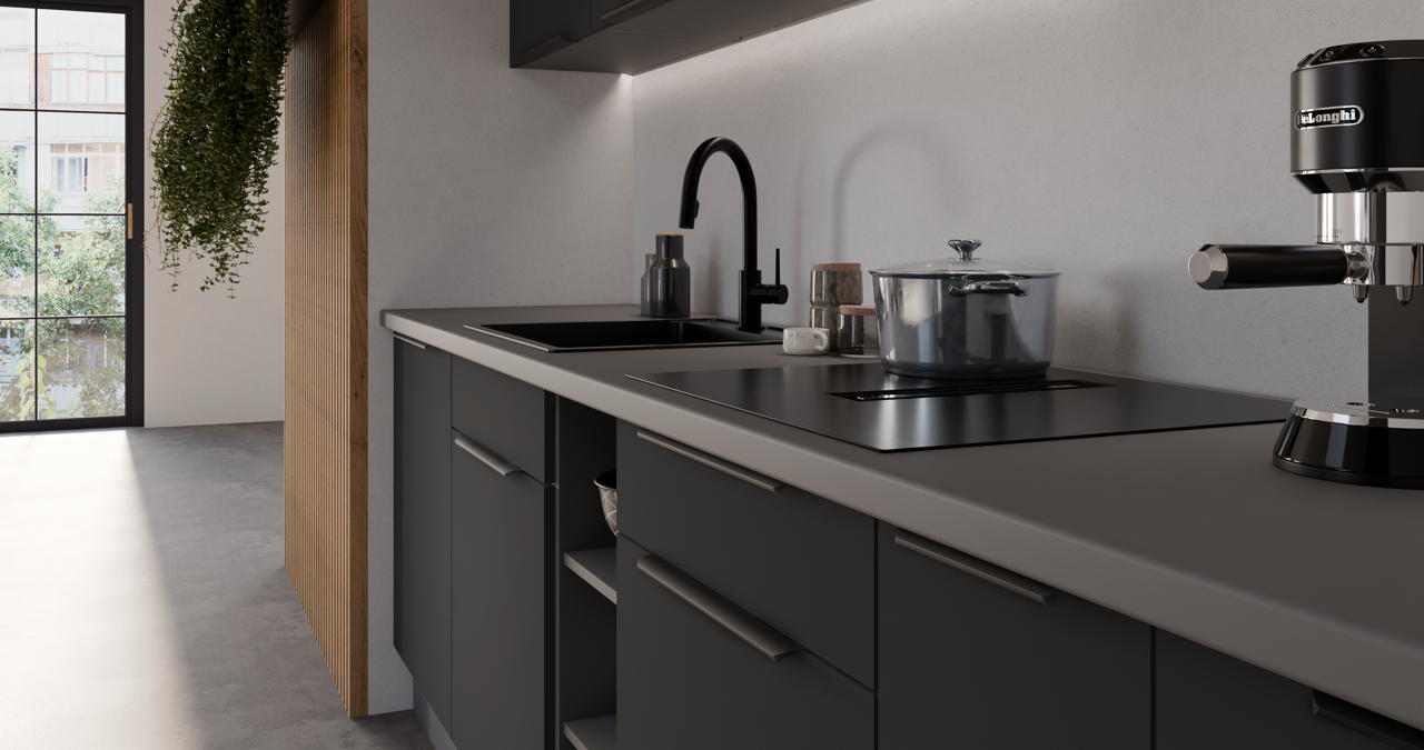 Charakterystyka systemu szafek kuchennych Aria Antracyt: