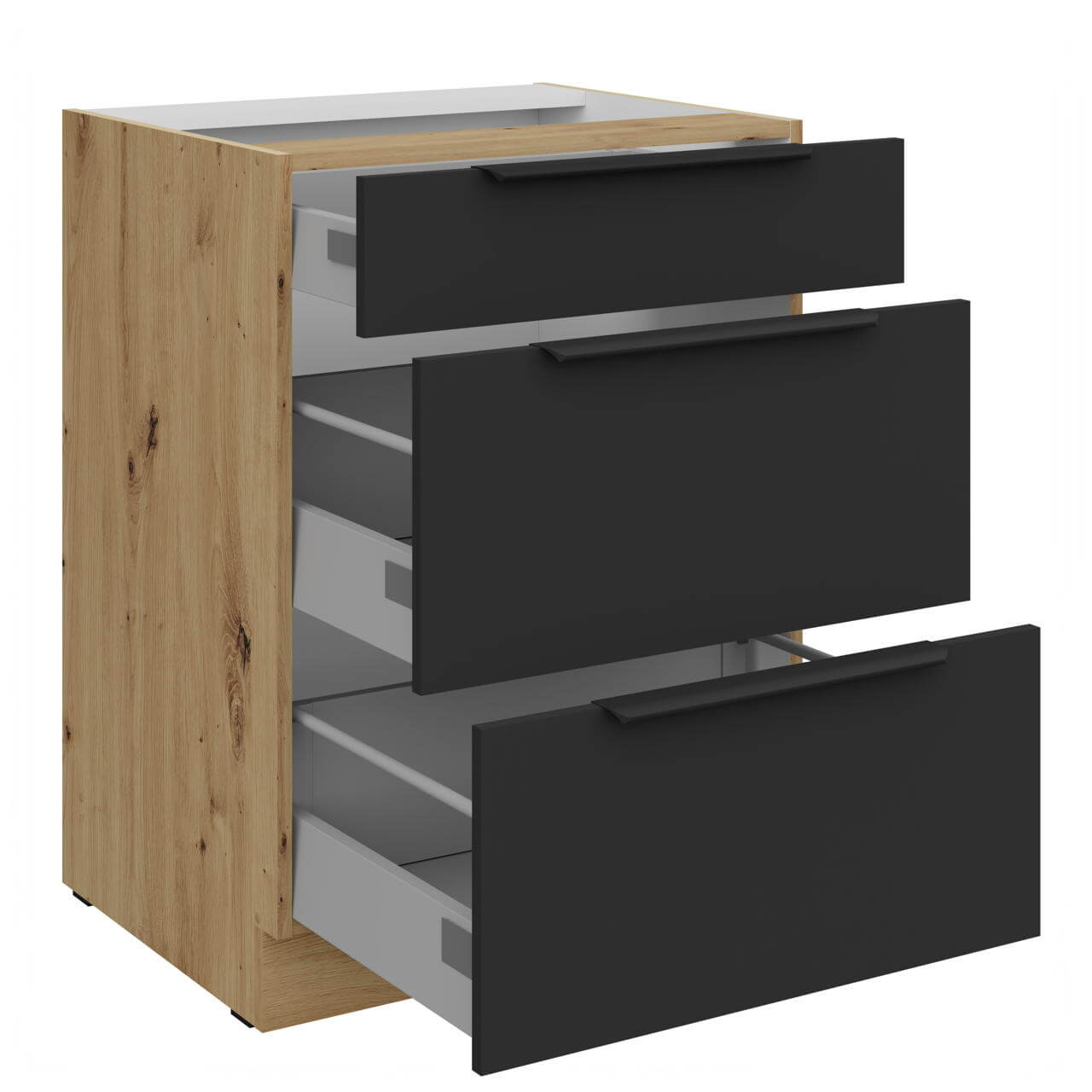 Aria czarny/artisan 60 D 3S BB - szafka dolna 60cm, wyposażona w trzy szuflady.