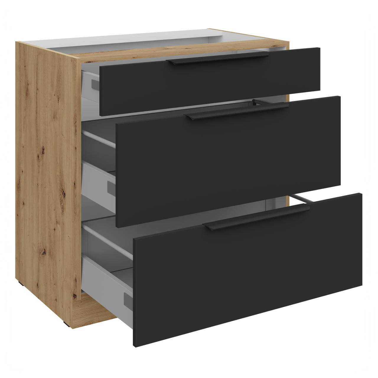 Aria czarny/artisan 80 D 3S BB - szafka dolna 80cm, wyposażona w trzy szuflady.