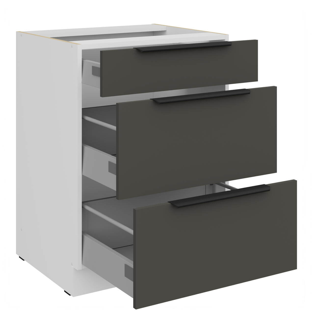 Aria grafit/biały 60 D 3S BB - szafka dolna 60cm, wyposażona w trzy szuflady.