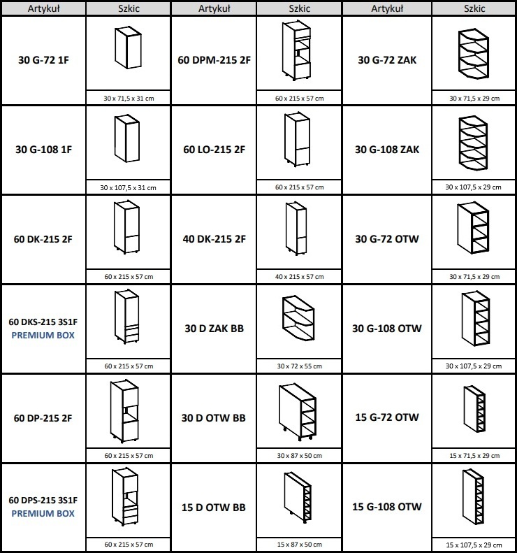 Wszystkie dostępne szafki kuchni Cremona Antracyt: