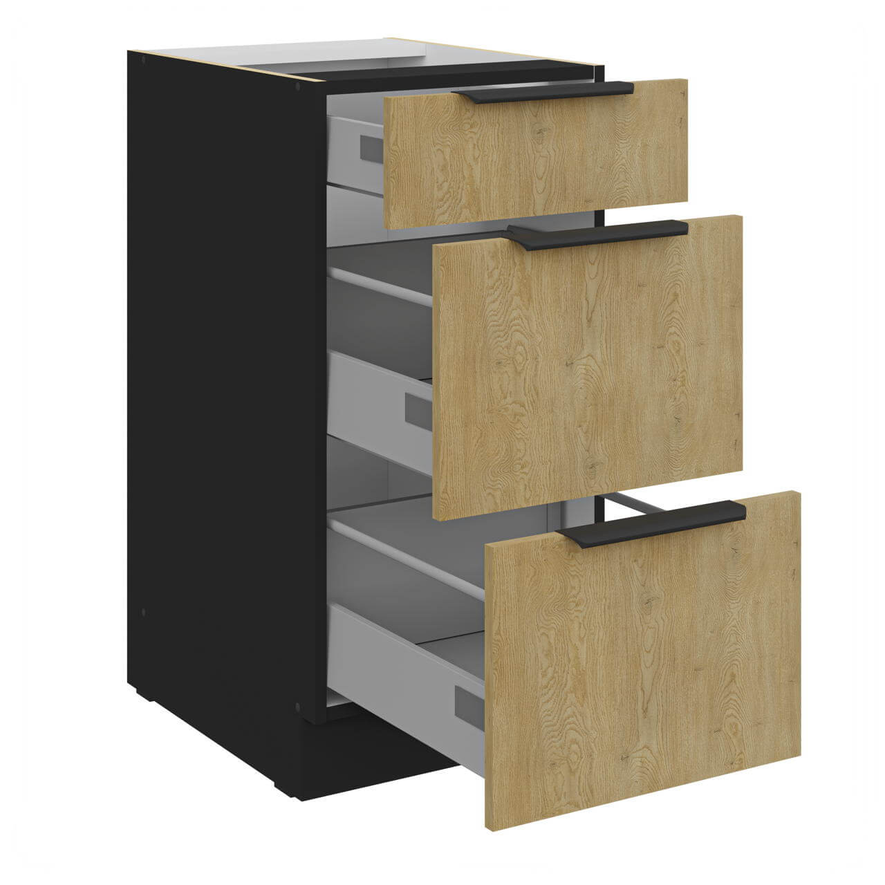 Cremona czarny 40 D 3S BB - szafka dolna 40cm z trzema szufladami.