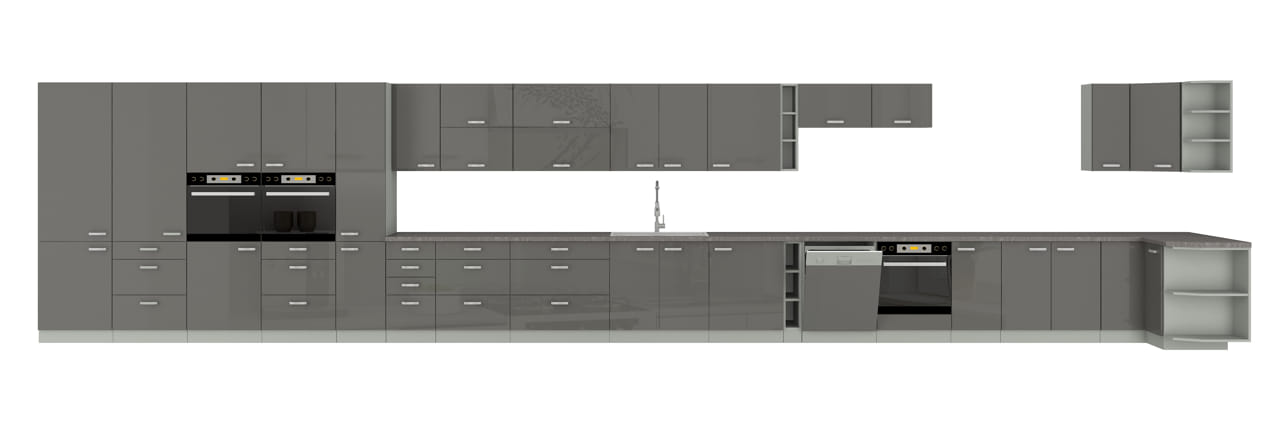 Wszystkie dostępne szafki kuchni Grey wraz z wymiarami: