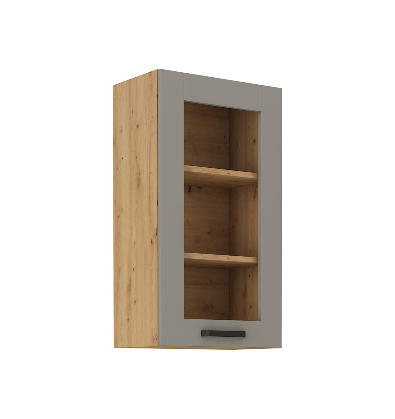 Luna Clay grey / dąb artisan 40 GS-90 1F - szafka górna z witryną 40cm. Wyposażona została w trzy półki.