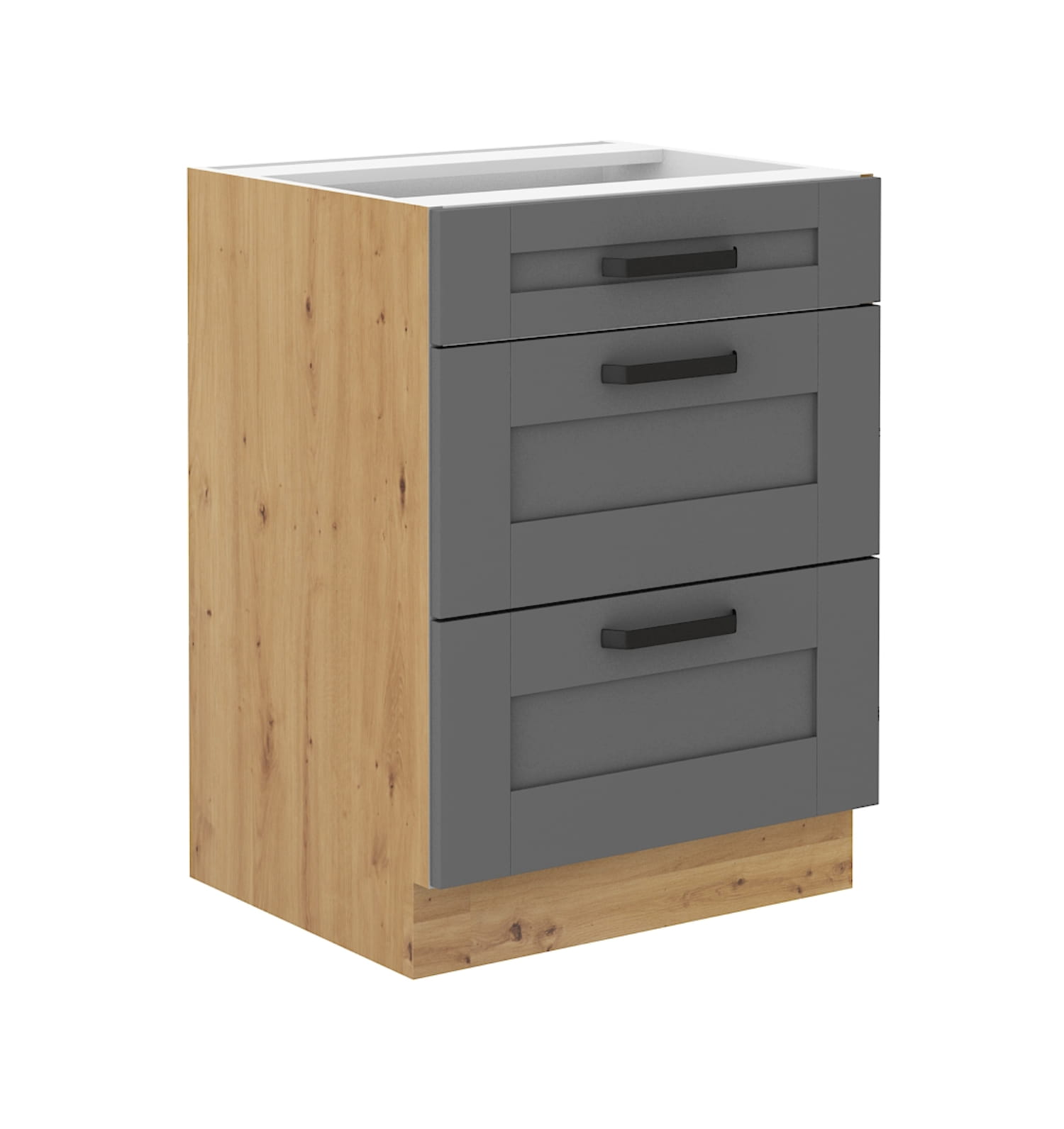 Luna Dust grey / dąb artisan 60 D 3S BB - szafka dolna 60cm z trzema szufladami. Wyposażona została w trzy szuflady premiumbox.