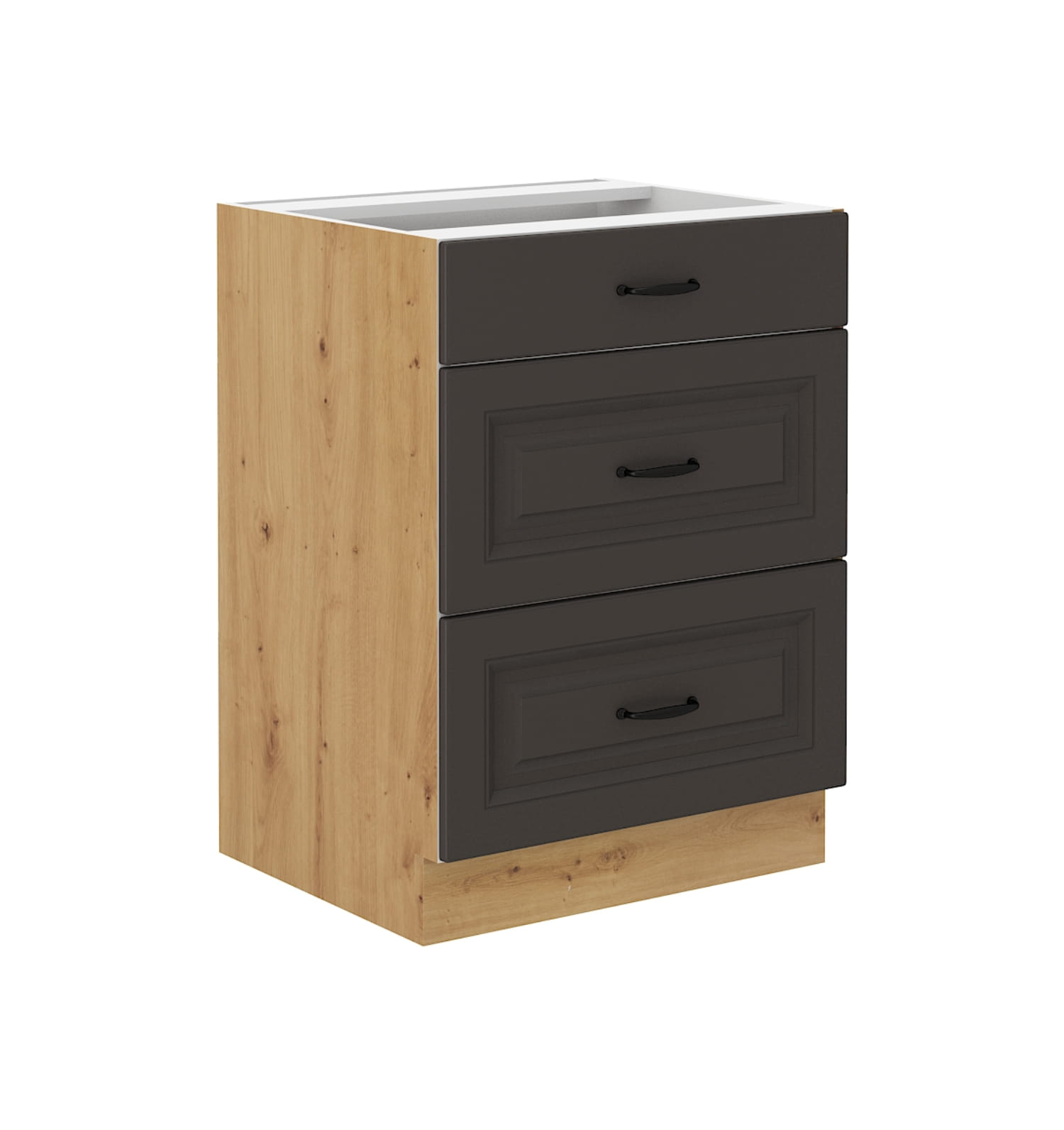Stilo grafit / dąb artisan 60 D 3S BB - szafka dolna 60cm. Wyposażona została w trzy szuflady premiumbox.
