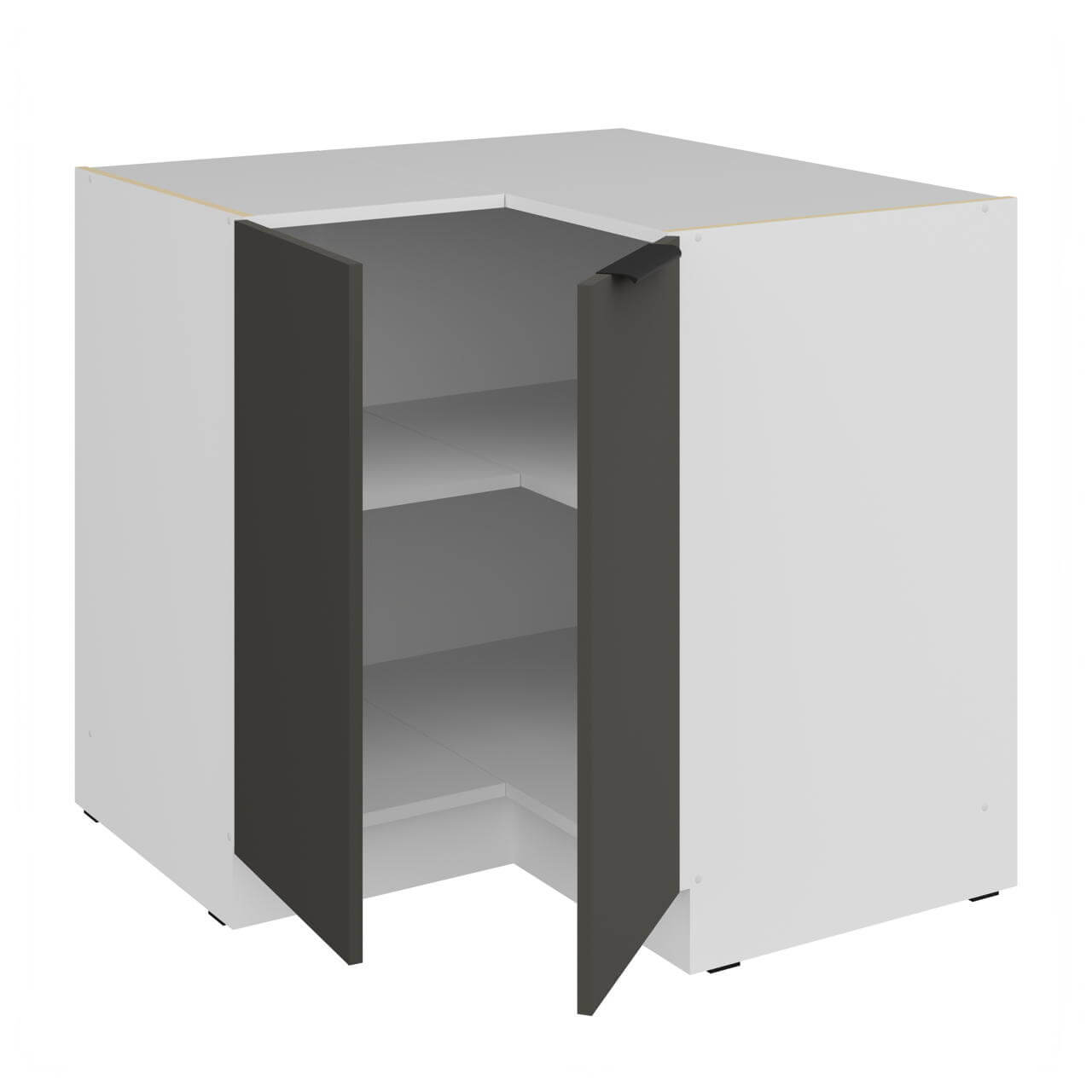 Aria grafit/biały 90x90 DN 2F BB - szafka dolna narożna 90/90. Wyposażona została w dwa fronty oraz półkę.