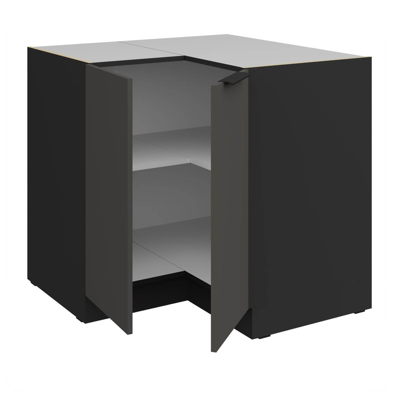 Aria grafit/czarny 90x90 DN 2F BB - szafka dolna narożna 90/90. Wyposażona została w dwa fronty oraz półkę.