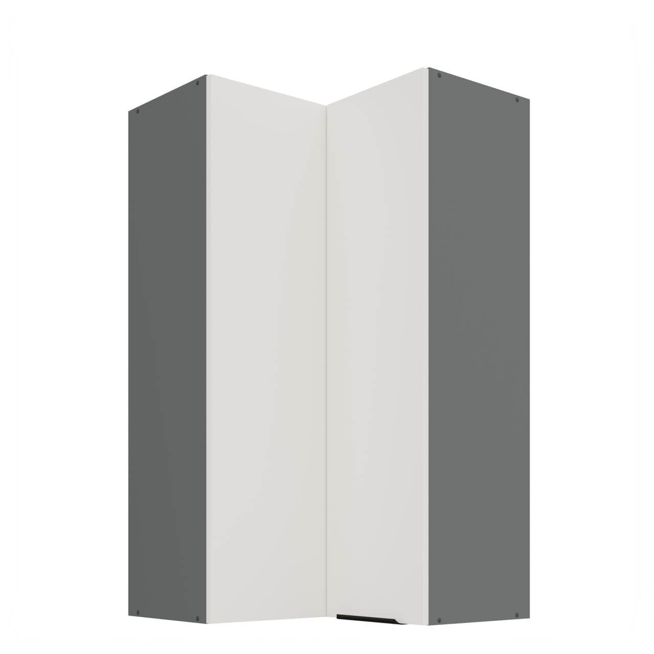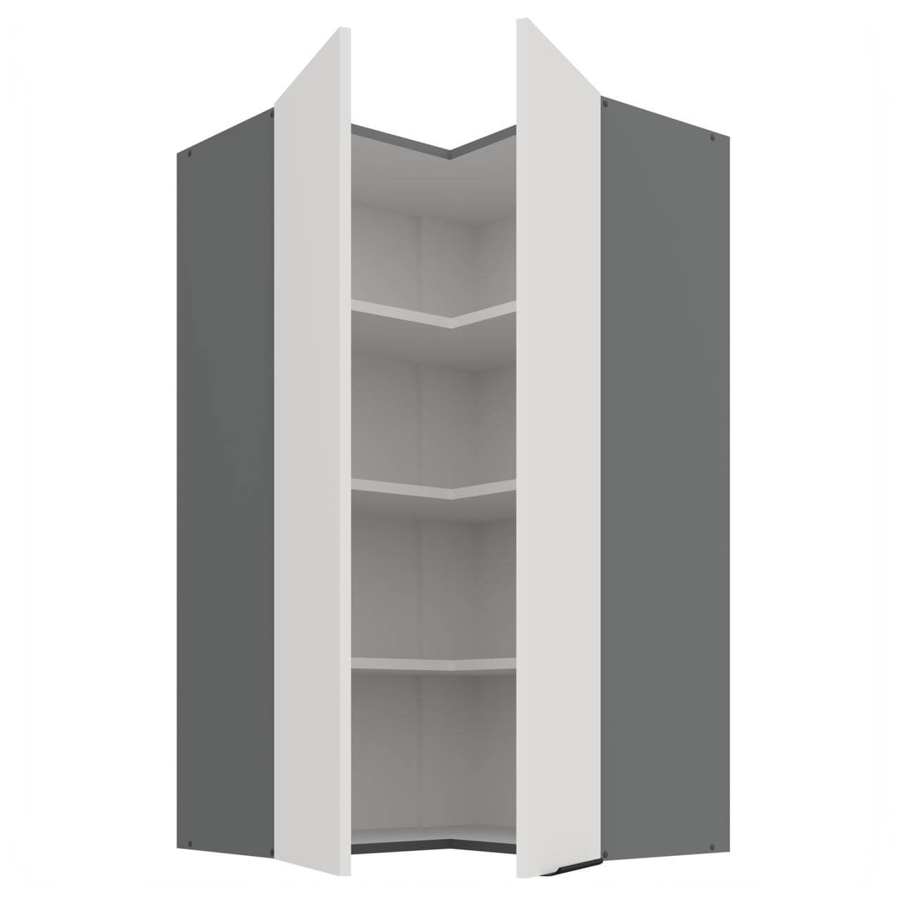 Aria biały/antracyt 60x60 GN-108 2F (90°) - szafka górna narożna 60x60 cm. Wyposażona została w dwa fronty oraz trzy półki.