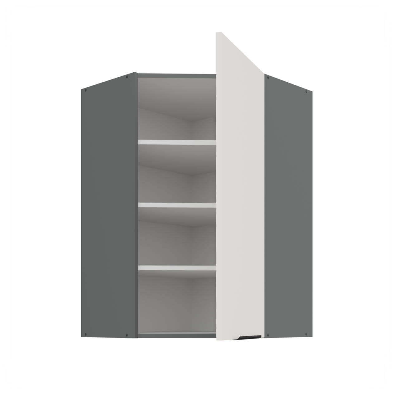 Aria biały/antracyt 60x60 GN-90 1F (45°) - szafka górna narożna 60x60 cm. Wyposażona została w jeden front oraz trzy półki.