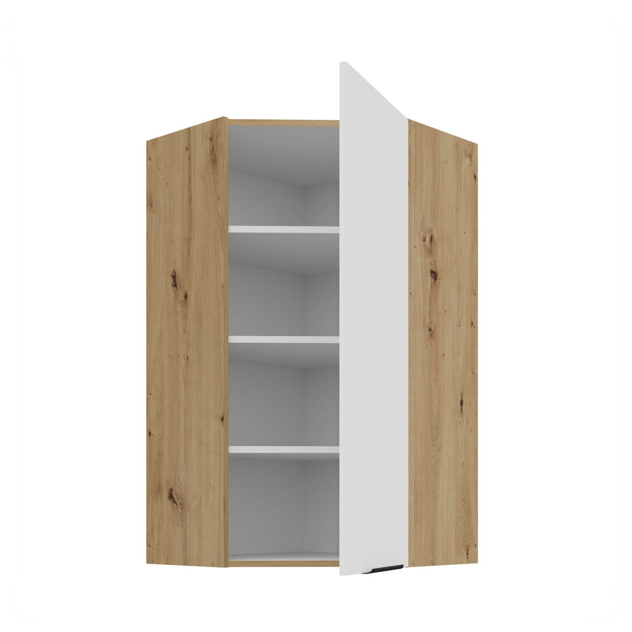 Aria biały/artisan 60x60 GN-108 1F (45°) - szafka górna narożna 60x60 cm. Wyposażona została w jeden front oraz trzy półki.