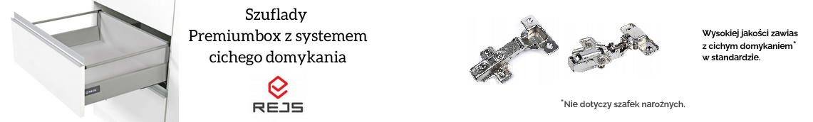 - szafki szufladowe wyposażone zostały w szuflady producenta REJS typu Premiumbox z systemem cichego domykania