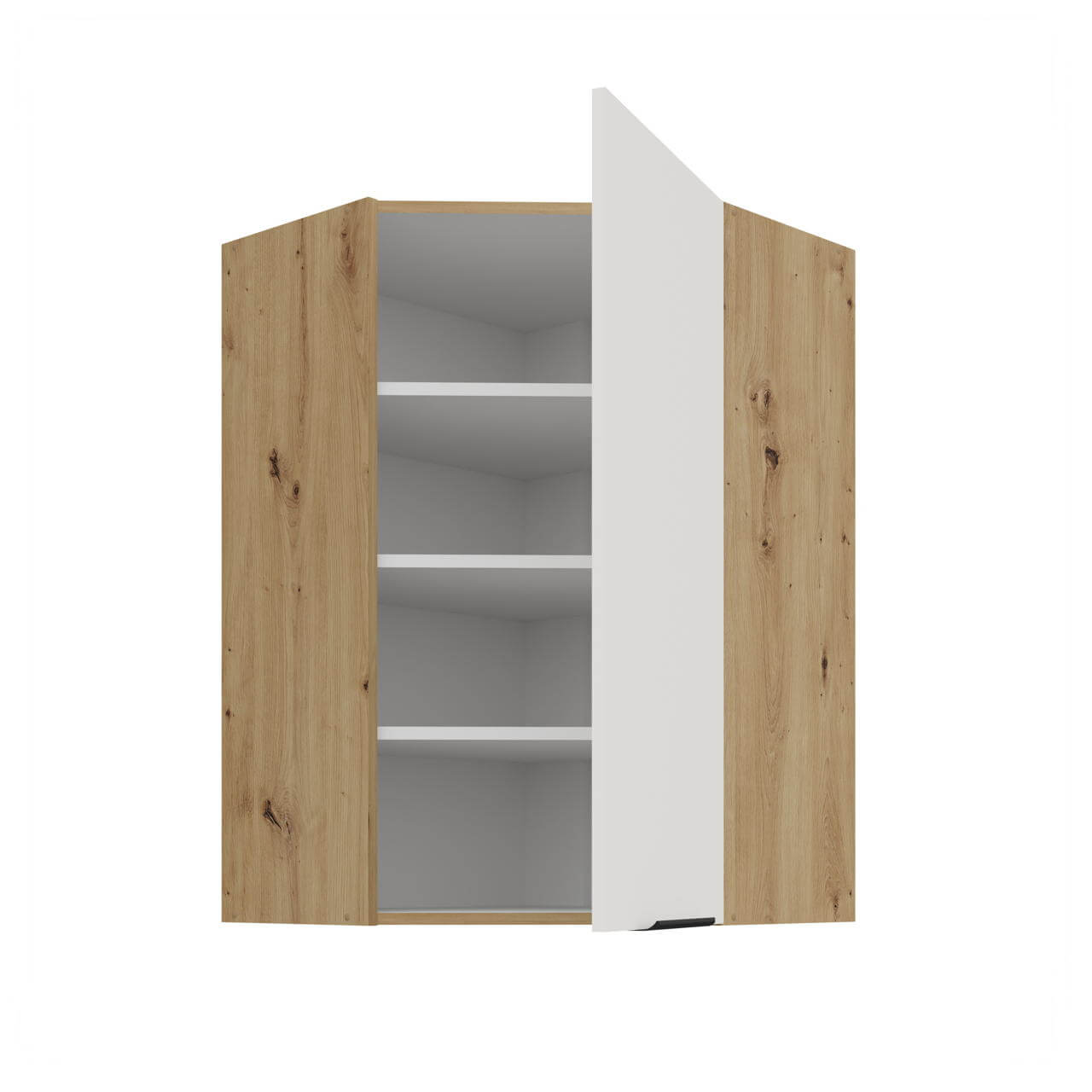 Aria biały/artisan 60x60 GN-90 1F (45°) - szafka górna narożna 60x60 cm. Wyposażona została w jeden front oraz trzy półki.