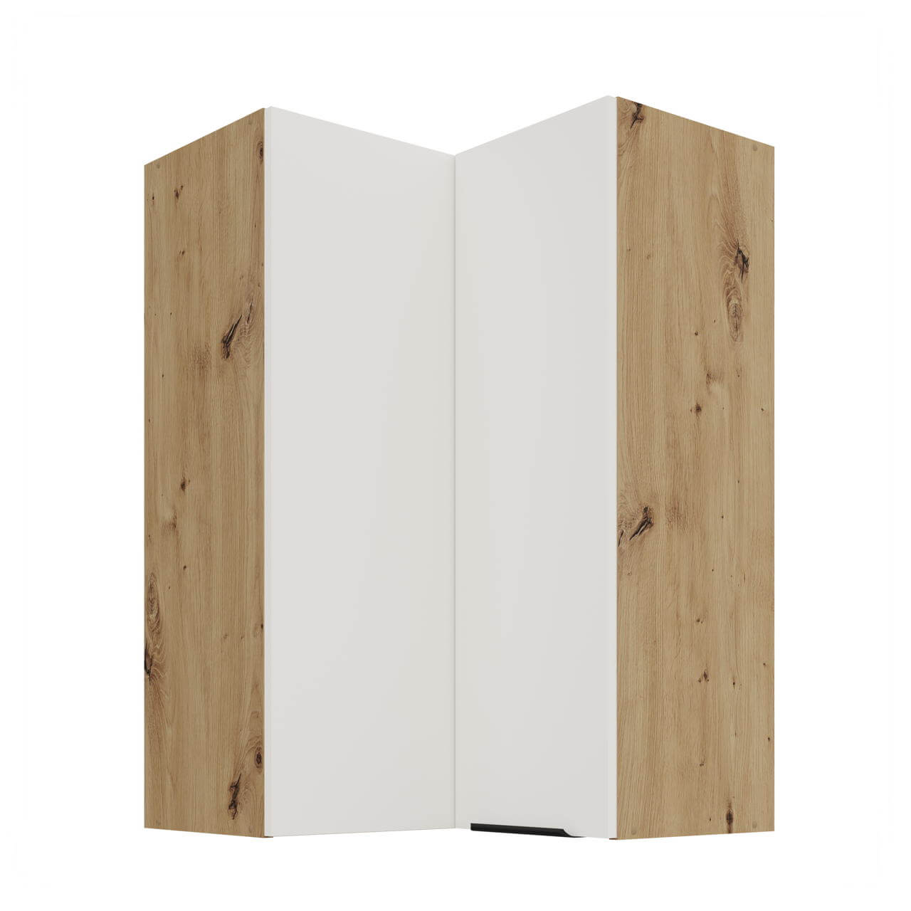 Aria biały/artisan 60x60 GN-90 2F (90°) - szafka górna narożna 60x60 cm. Wyposażona została w dwa fronty oraz trzy półki.