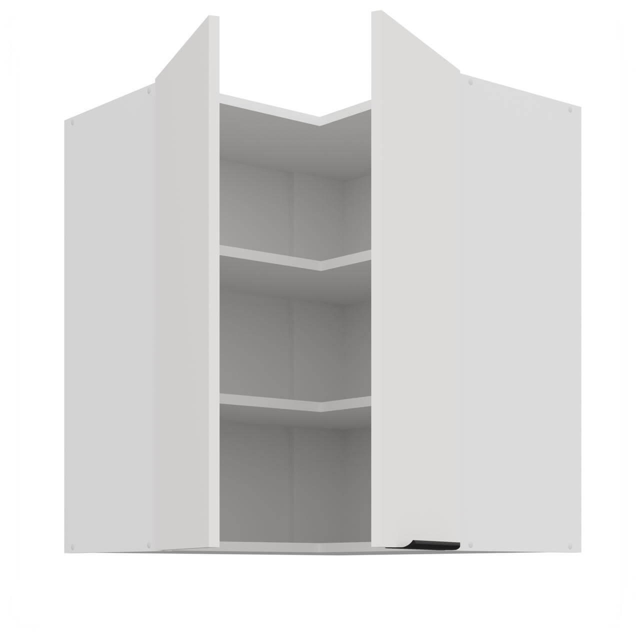 Aria biały/biały 60x60 GN-72 2F (90°) - szafka górna narożna 60x60 cm. Wyposażona została w dwa fronty oraz dwie półki.