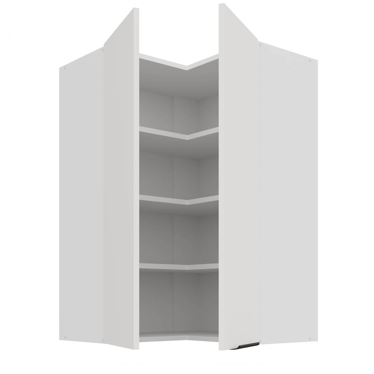 Aria biały/biały 60x60 GN-90 2F (90°) - szafka górna narożna 60x60 cm. Wyposażona została w dwa fronty oraz trzy półki.