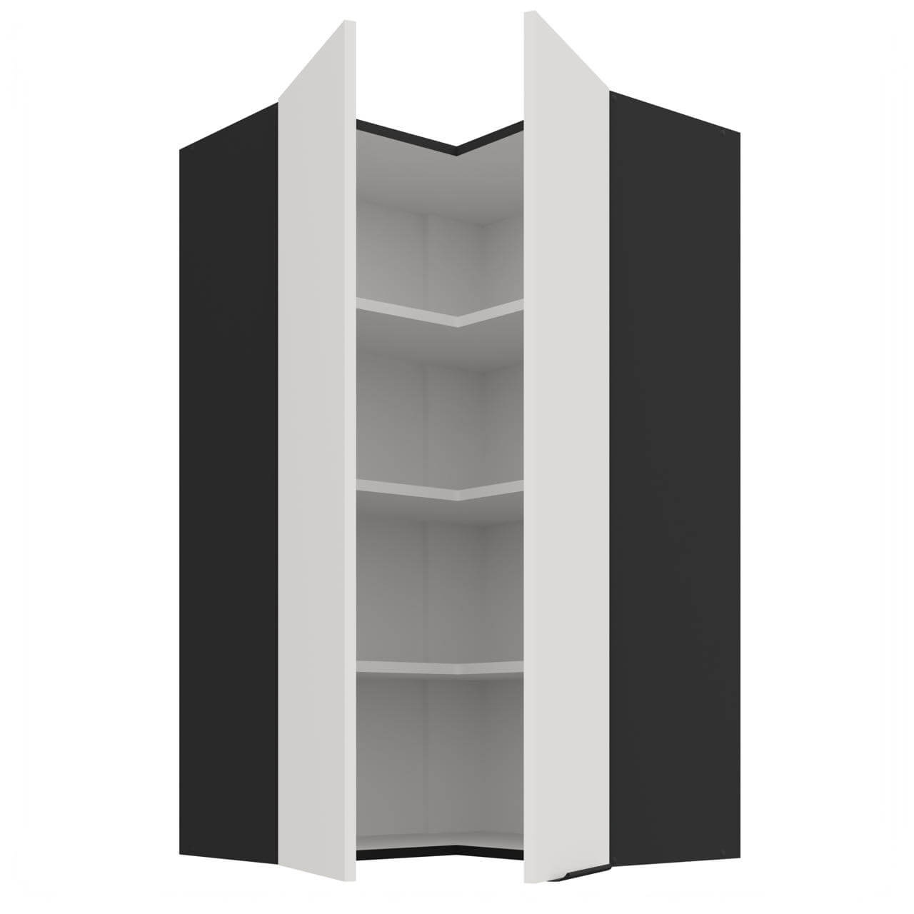 Aria biały/czarny 60x60 GN-108 2F (90°) - szafka górna narożna 60x60 cm. Wyposażona została w dwa fronty oraz trzy półki.