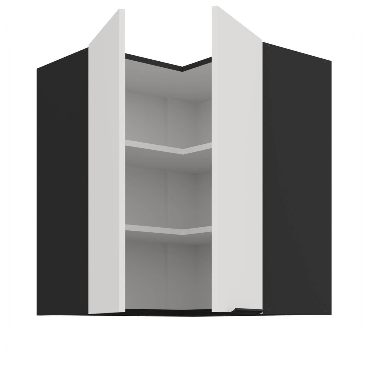 Aria biały/czarny 60x60 GN-72 2F (90°) - szafka górna narożna 60x60 cm. Wyposażona została w dwa fronty oraz dwie półki.