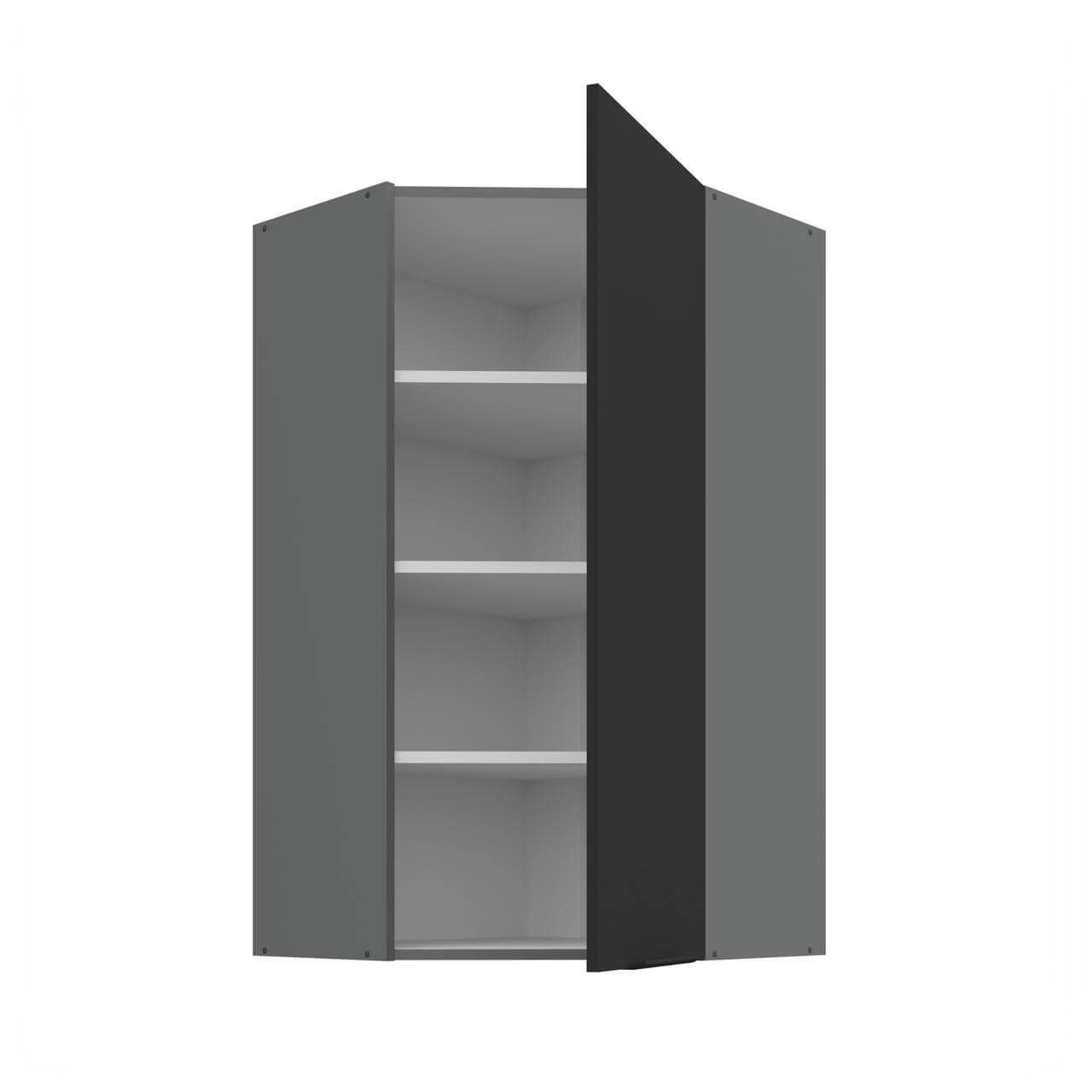 Aria czarny/antracyt 60x60 GN-108 1F (45°) - szafka górna narożna 60x60 cm. Wyposażona została w jeden front oraz trzy półki.
