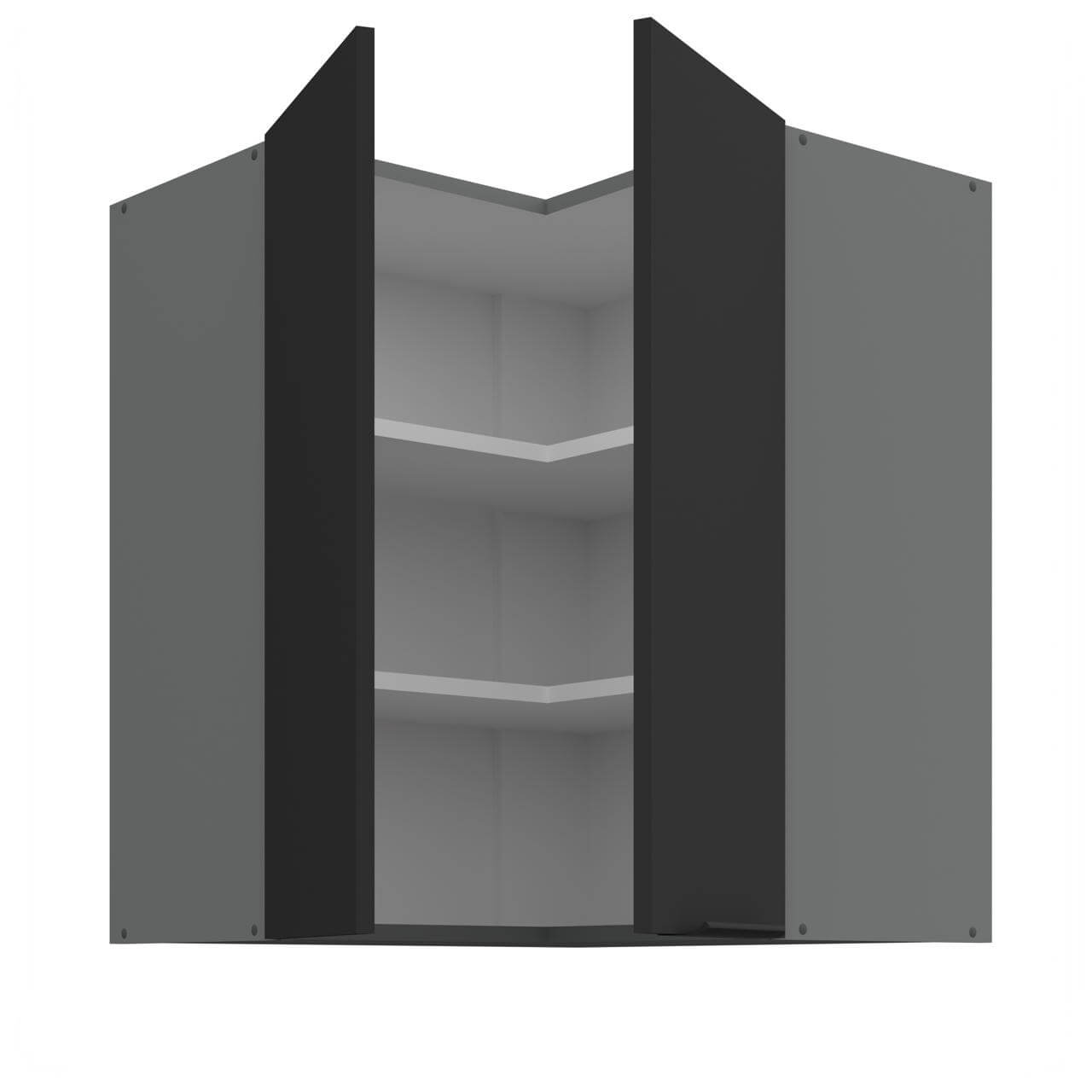 Aria czarny/antracyt 60x60 GN-72 2F (90°) - szafka górna narożna 60x60 cm. Wyposażona została w dwa fronty oraz dwie półki.