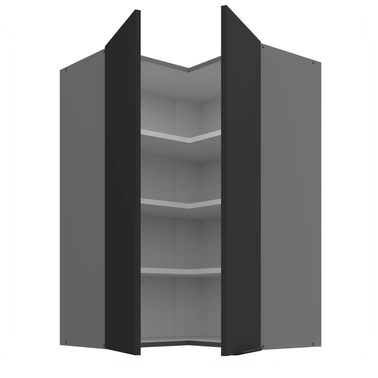 Aria czarny/antracyt 60x60 GN-90 2F (90°) - szafka górna narożna 60x60 cm. Wyposażona została w dwa fronty oraz trzy półki.