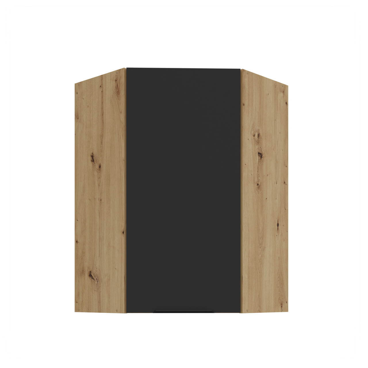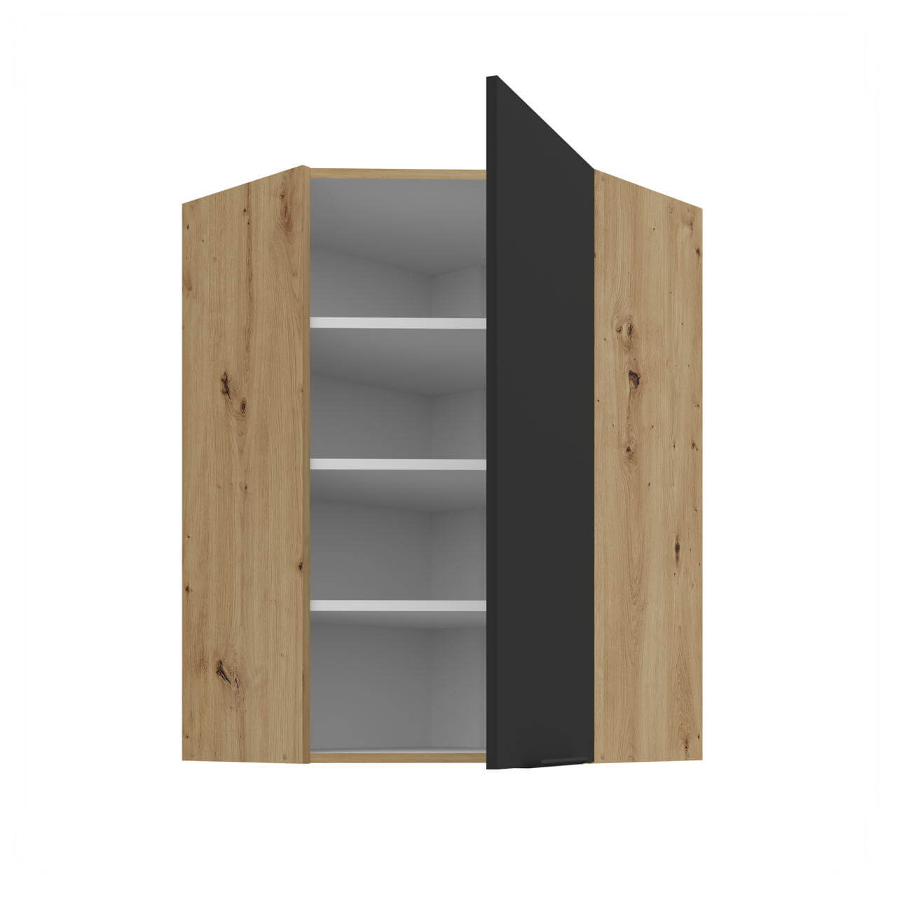 Aria czarny/artisan 60x60 GN-90 1F (45°) - szafka górna narożna 60x60 cm. Wyposażona została w jeden front oraz trzy półki.