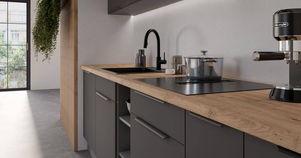 Charakterystyka systemu szafek kuchennych Aria Antracyt: