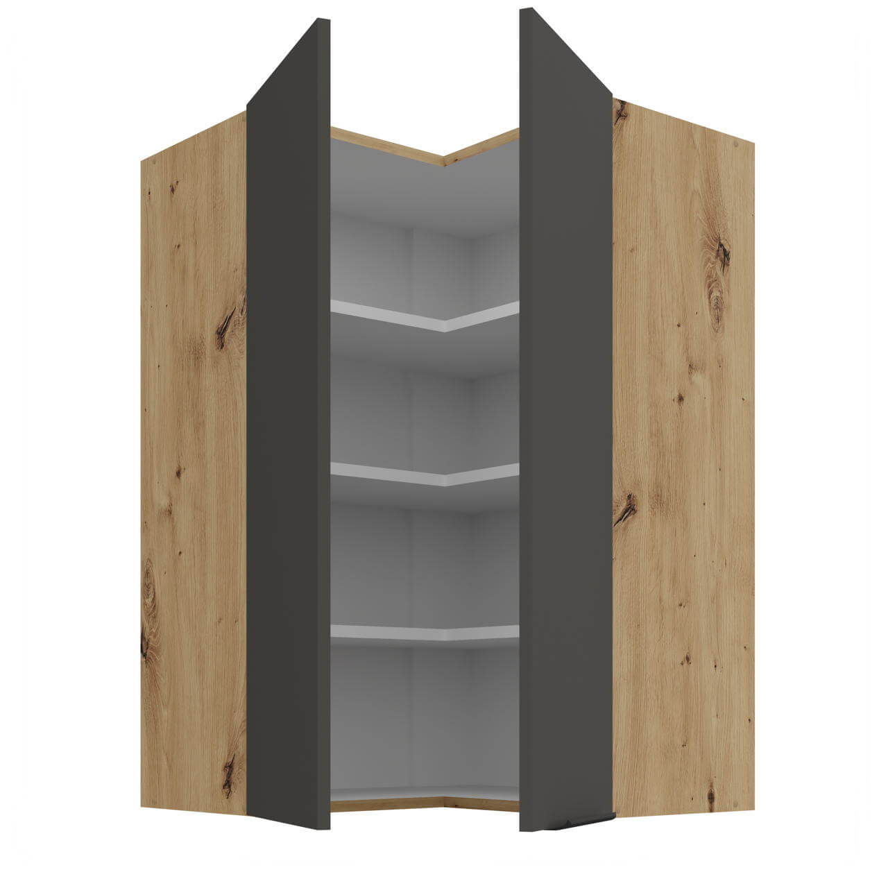 Aria grafit/artisan 60x60 GN-90 2F (90°) - szafka górna narożna 60x60 cm. Wyposażona została w dwa fronty oraz trzy półki.
