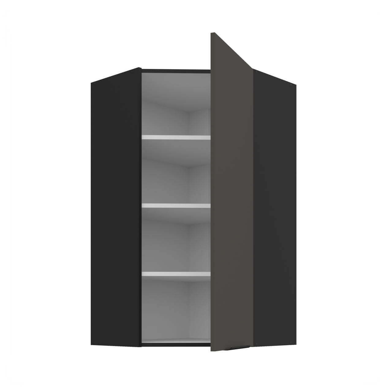 Aria grafit/czarny 60x60 GN-108 1F (45°) - szafka górna narożna 60x60 cm. Wyposażona została w jeden front oraz trzy półki.