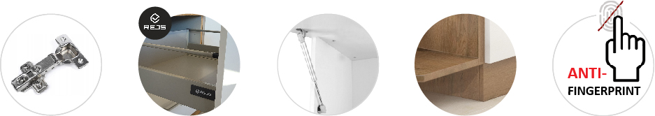 - zawiasy topowych producentów m.in. GTV, REJS z systemem cichego domykania w standardzie(nie dotyczy szafek narożnych)