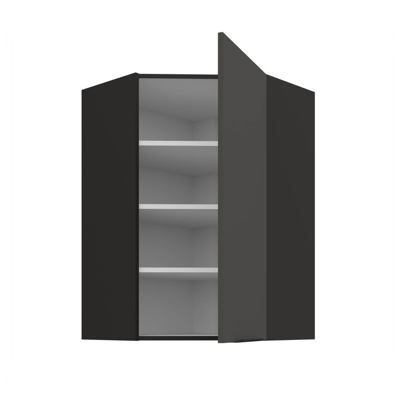 Aria grafit/czarny 60x60 GN-90 1F (45°) - szafka górna narożna 60x60 cm. Wyposażona została w jeden front oraz trzy półki.